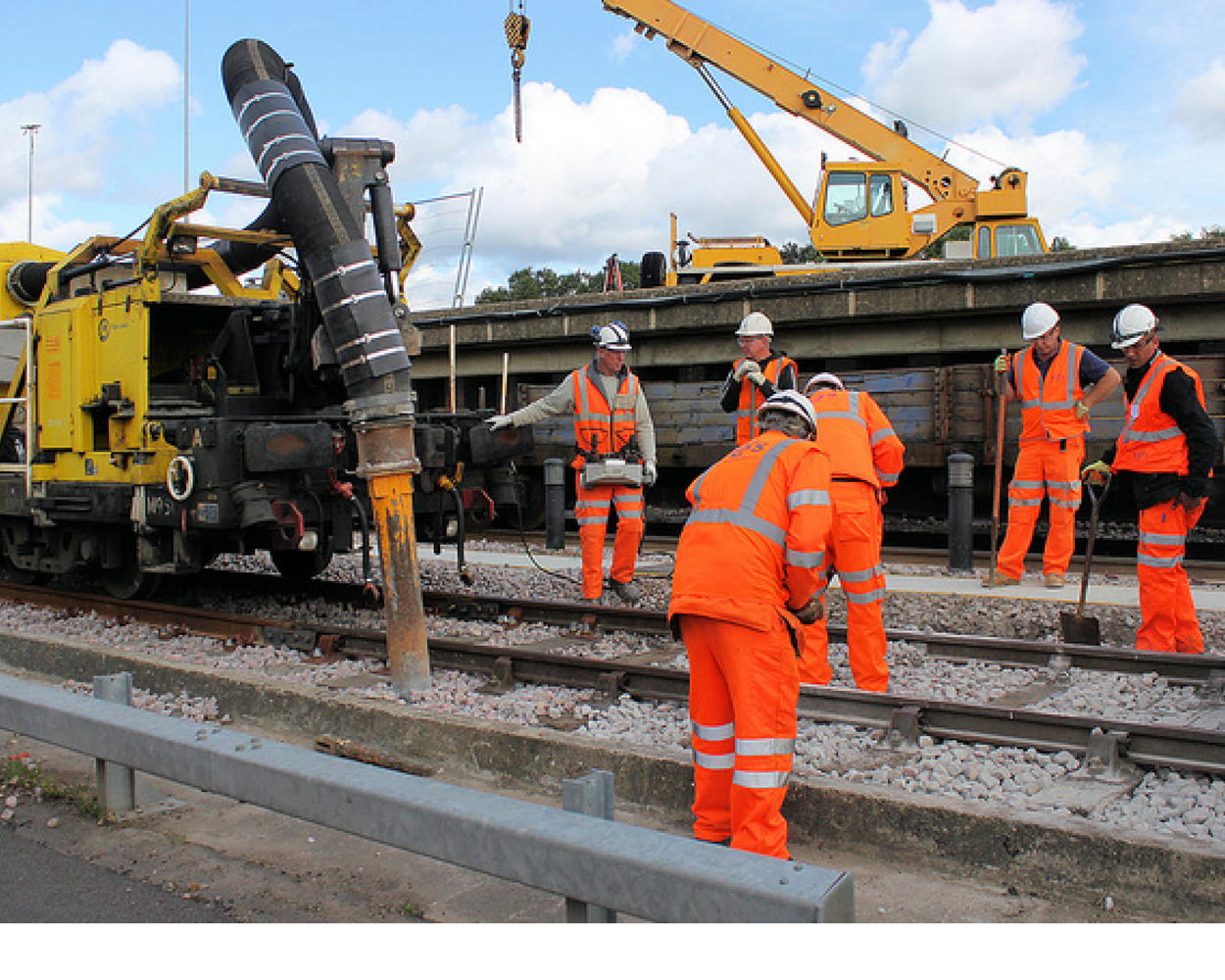 It was necessary to mount the vacuum plant onto two separate rail wagons. One wagon carries the hydraulic manipulator (suction hose), storage hopper and filter units and the second wagon carries the seven diesel engines necessary to drive the vacuum pumps and power the hydraulics and electrics.