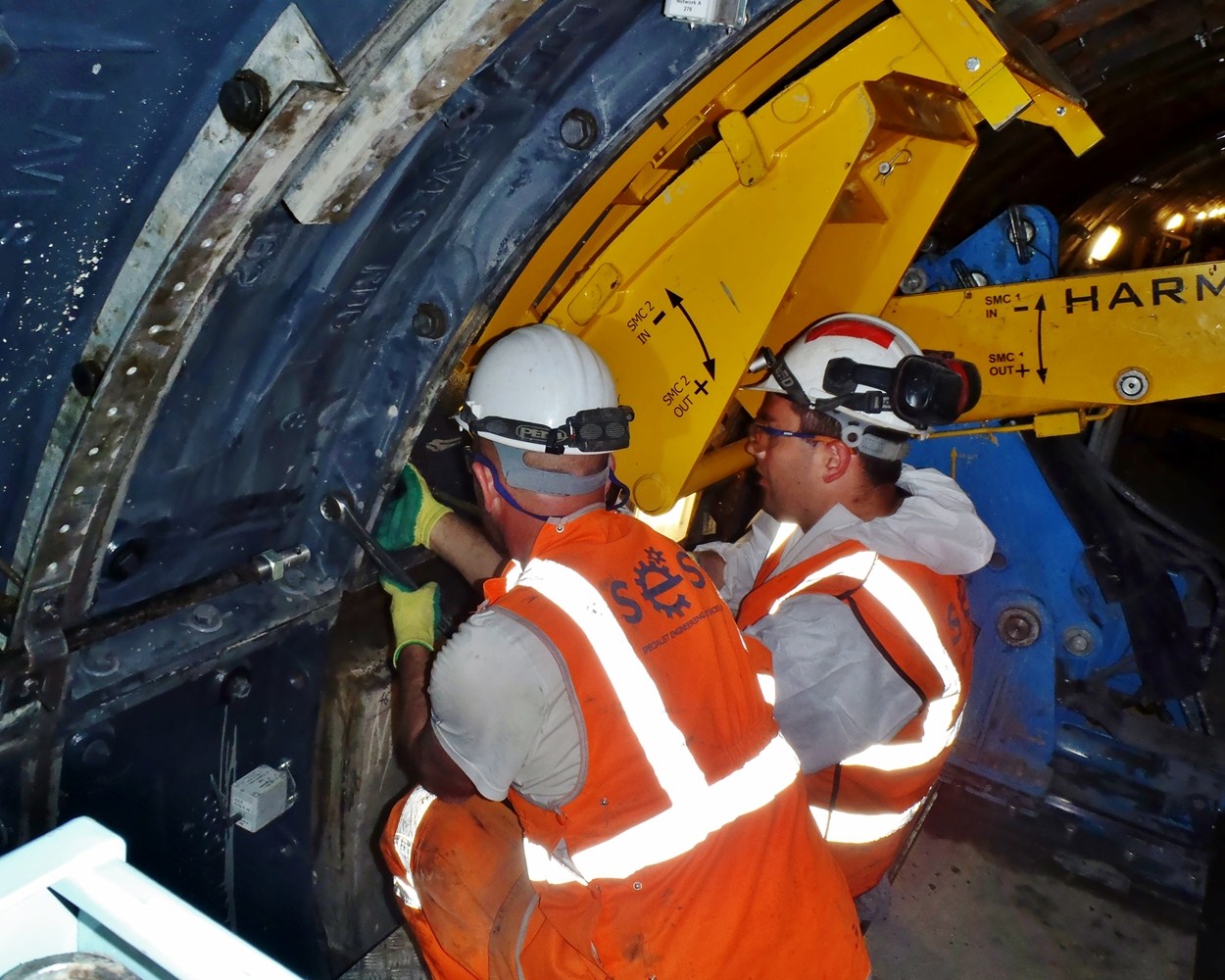 Working at night, SES Tunnelling engineers diligently oversee a train-mounted Segment Handling Plant (SHP): a sophisticated machine that replaces the tunnel lining at a rate far quicker than even the most experienced work crew. Thanks to impeccable scheduling and maintenance, each night's work is completed in good time for the morning's first tube train. It's zero inconvenience for passengers - and for London Underground, too.