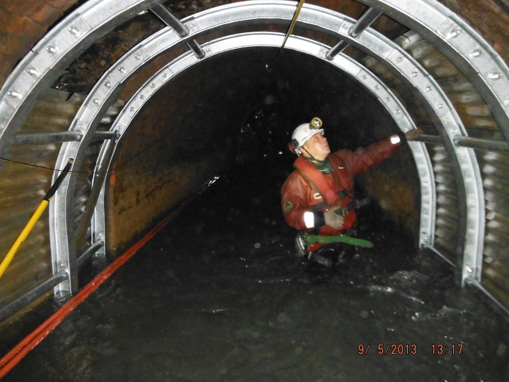 The entire SES workforce underwent specialist water rescue training for the tunnel works. The tunnel water was up to one metre deep and small boats equipped with electric outboard motors were utilised for the transport of men and equipment. Communication between the underground workforce and surface control was maintained by a combination of Leaky Feeder and EMCOMM systems as a key safety measure.
